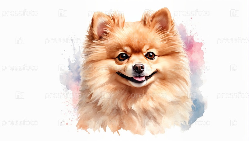 Померанская акварель с розовым брызгом, декоративный портрет домашнего питомца, обложка для книги на животных, экопакет, рекламный плакат