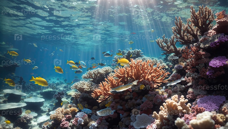 Яркий голубой коралловый мир, солнечный свет, много рыб - опыт путешествий, волнение отпуска, безопасная информация об экскурсии, образование по экологии