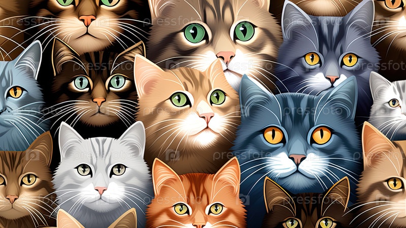 Образец многопородных кошек ? tabby, bicolor, Maine Coon, игривый стиль, печать на бумаге, реклама, этикетка питания, брендинг ухода