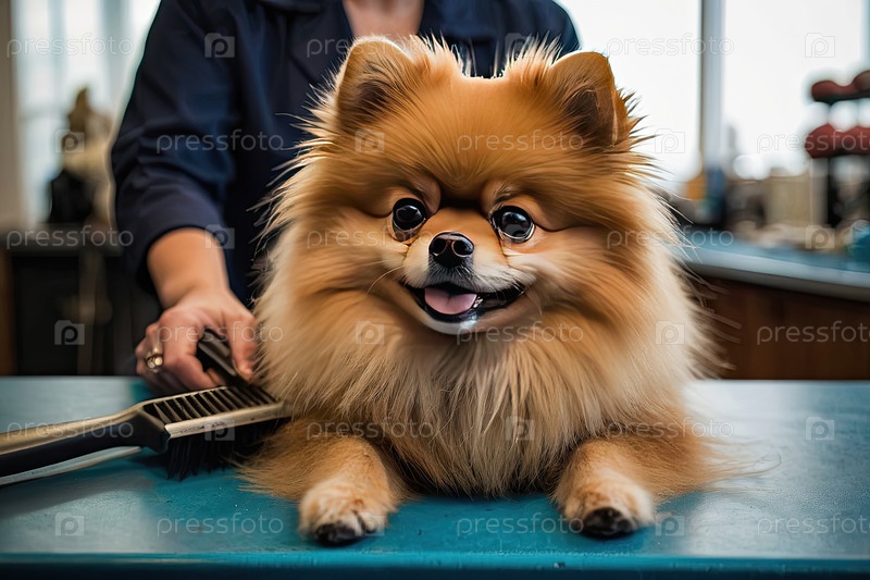 Большой помераньян на сеансе ухода за собой ? толстая шерсть, де-шеддинг, пациентская собака, домашний салон, стандартная стрижка породы, контроль пухоти