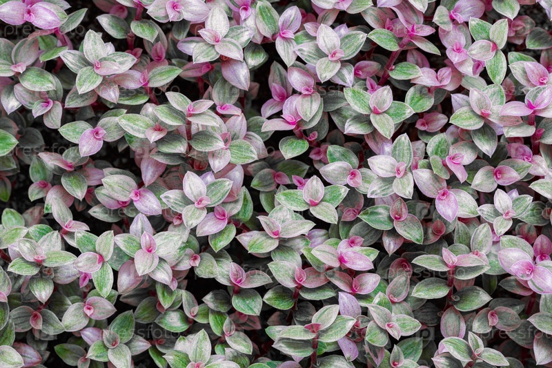 Цветочный фон из листьев розовой каллизии. Близкий план, вид сверху