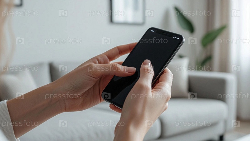 Смартфон в женских руках. Руки держат телефон