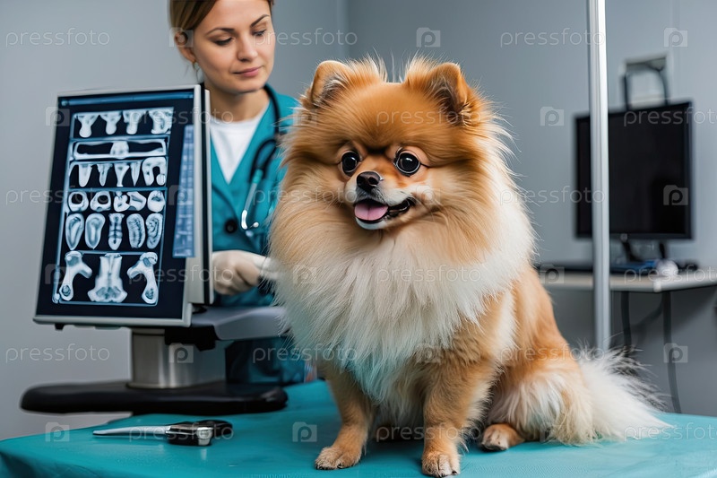 Помераньянская собака, рентгеновская фотография с ветеринарной диагностикой - проверка травм, физическое освидетельствование, клиника, здоровье породы, спокойный или стрессовый