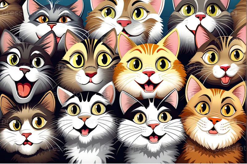 Плотное лицо кошки в толпе ? стиль мультфильма, бесшовная печать, реклама пищи для домашних животных, розничная торговля, текстильное одеяло, оздоровление