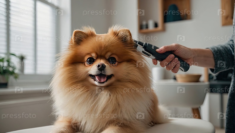 Помераньян после стилизации, гример с ножницами - домашняя уборка, пушистая шерсть, здоровый мех, аккуратная стрижка, комфорт для питомцев, салонный стиль