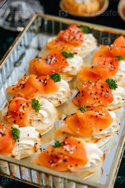 Брушетта с копченым лососем со сливочным сыром и кунжутом
