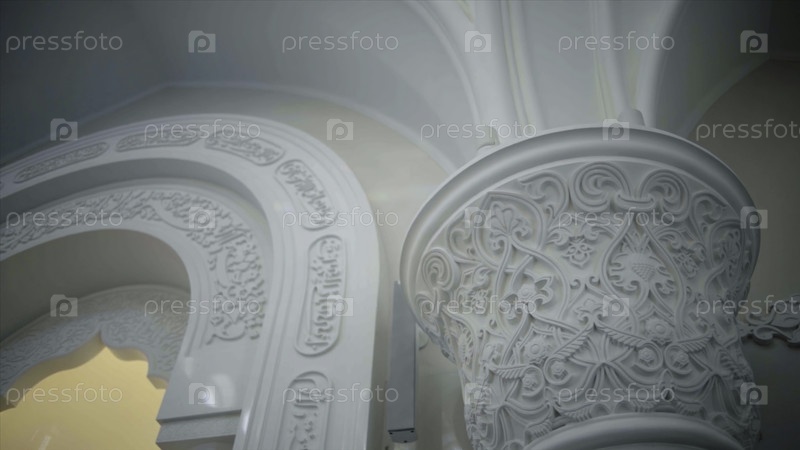 Белокрашенные колонны. Сцена. Красивая архитектура внутри комнаты и красивые вырезанные узоры на стенах. Высококачественная запись FullHD