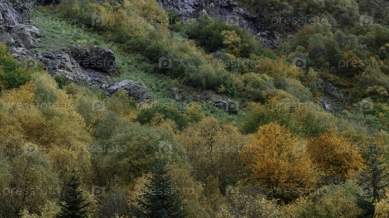 Красивый вид на долину с рекой и ручьями, текущими и опускающимися вниз.Креативно.Осенний пейзаж со скалами