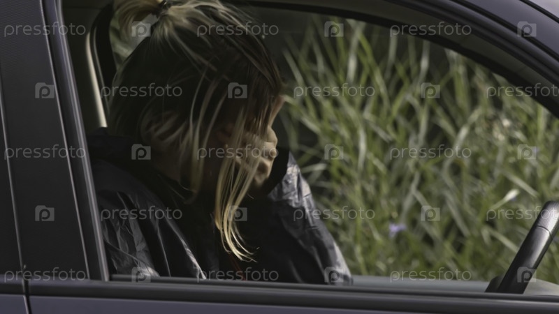 Молодой человек стрессирует в машине. акции. молодой человек сидит в автомобиле на обочине дороги и подвергается стрессу
