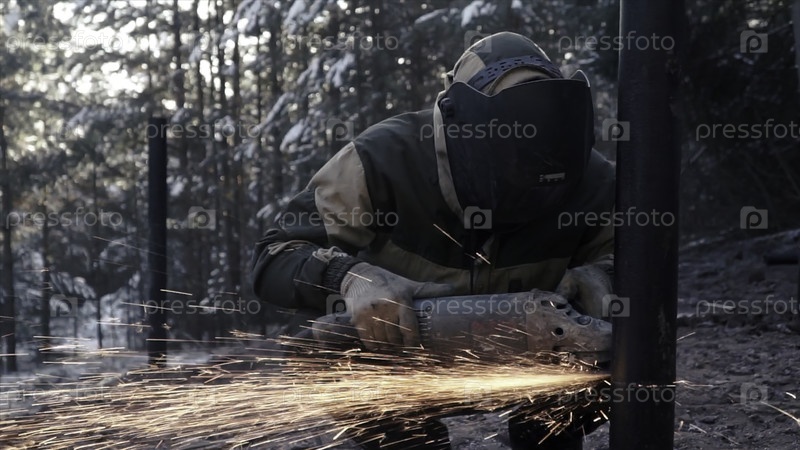 Металлическая пила. Клип. Сложная работа со специальным оборудованием на открытом воздухе. Высококачественная запись FullHD