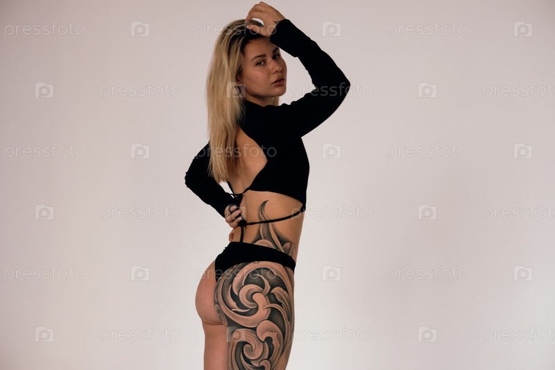 Девушка с татуировкой на бедре