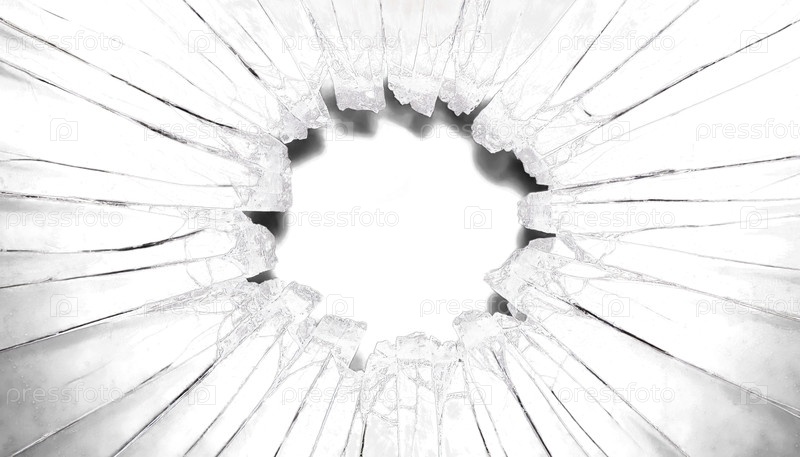 Разбитое стекло с отверстием в центре (футажи и клипарты для монтажа)