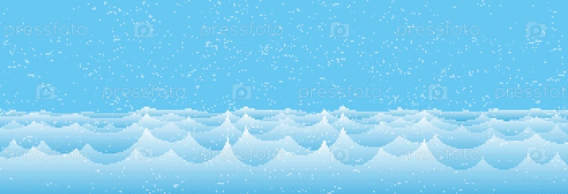 Пиксельный зимний морской пейзаж с голубой волной