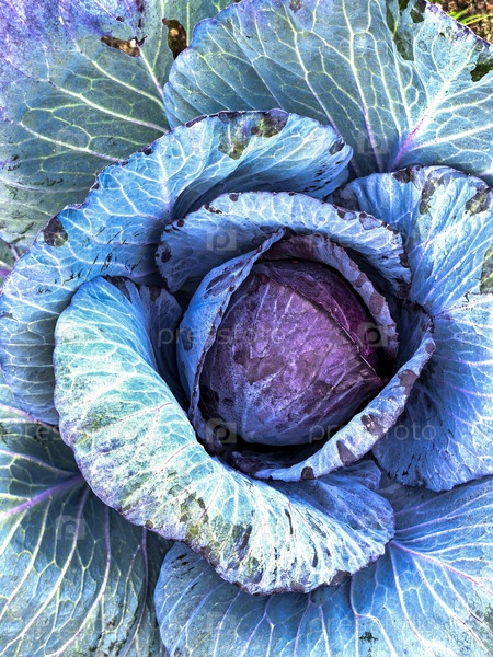 Ближайшее изображение яркой красной капусты в естественном свете