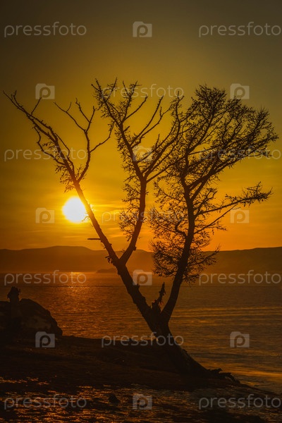 Игра теней и закатного солнца на озере Байкал