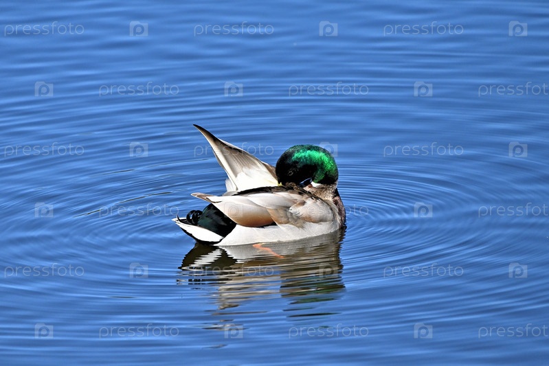 Молодой селезень весной на озере