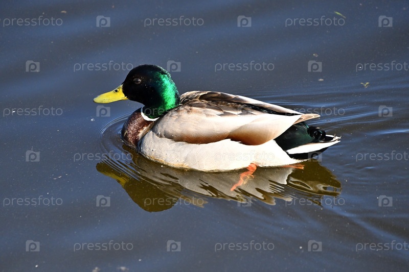 Молодой селезень весной на озере