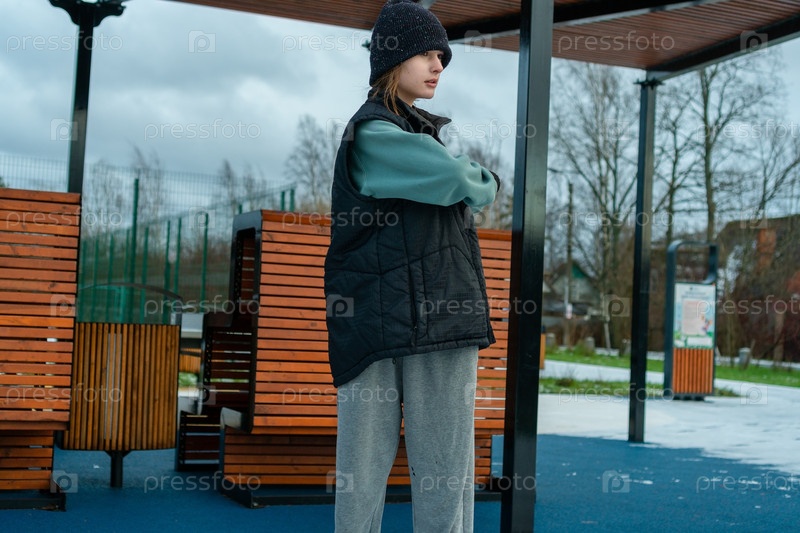 Девушка растягивается с вращением торса