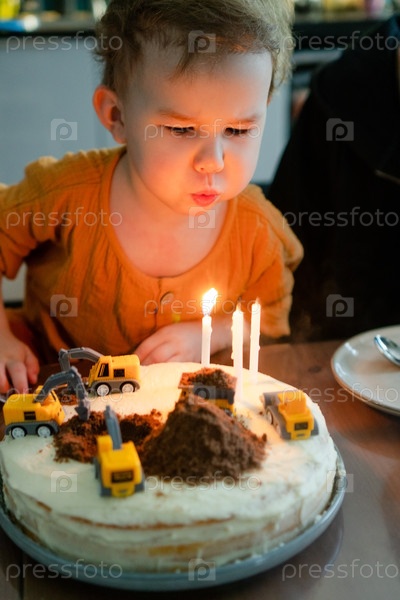 Выдувая свечи для мальчика с тортом на день рождения
