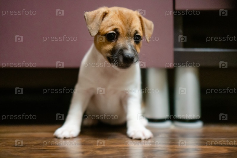 Щенок, стоящий внимательно на полу, захватывает бдительную и любопытную природу молодых домашних животных, подчеркивая их игривый и авантюрный дух