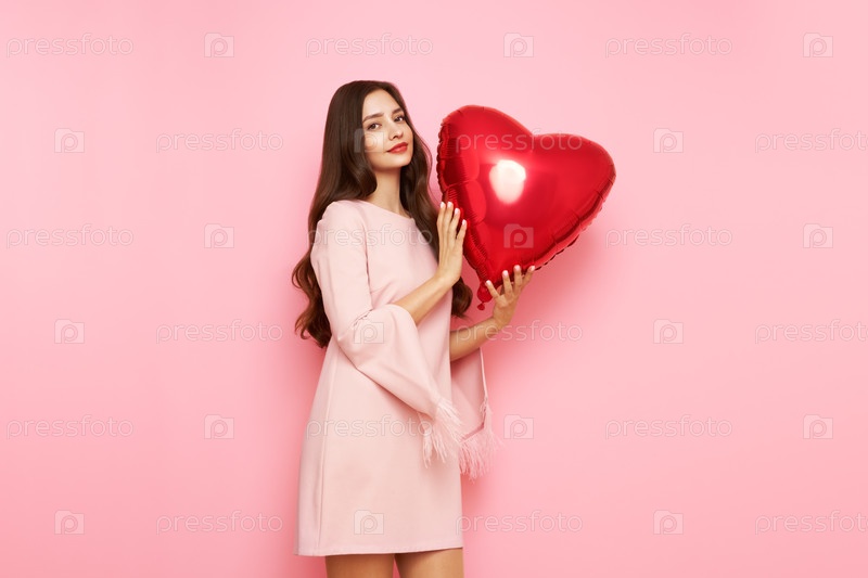 Красивая молодая женщина с воздушным шаром в форме сердца