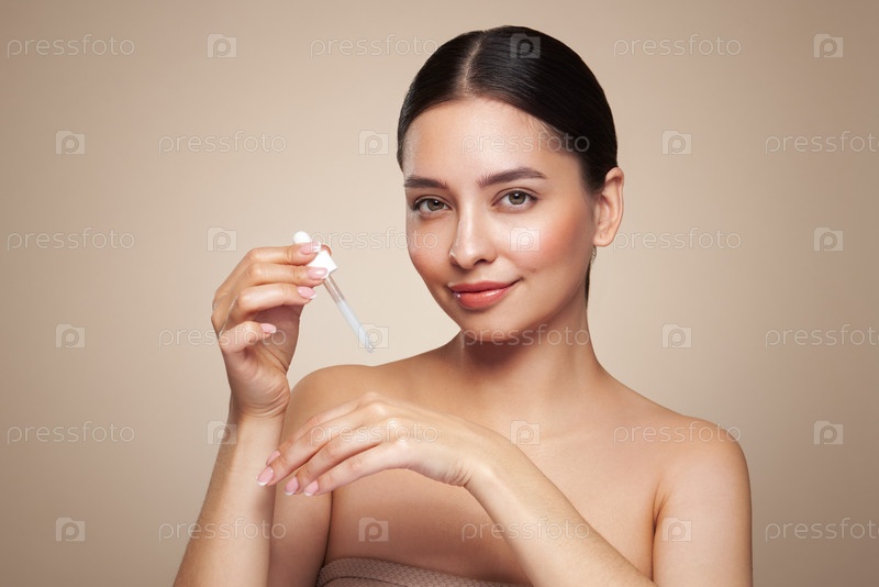 Молодая красивая женщина наносит сыворотку для лица