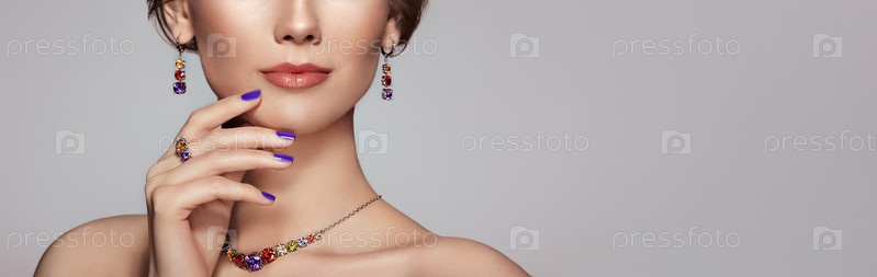 Портрет Красивая женщина с ювелирными украшениями