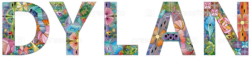 Ручно нарисованный художественный дизайн. ручной иллюстрации мужское имя ДИЛАН для футболки и другого украшения