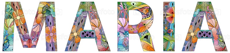 Ручная иллюстрация женского имени MARIA для футболки и других украшений
