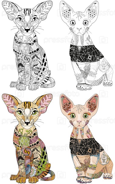 Набор стилизованных кошек для красочных книг, дизайна футболок, татуировок и других украшений