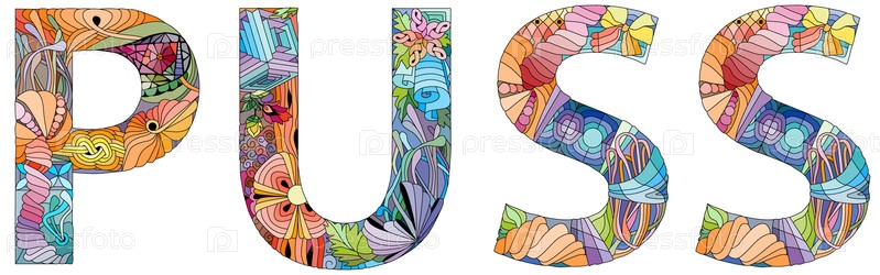 Рукописный художественный дизайн. ручной рисунок слова иллюстрации PUSS для футболок и других украшений