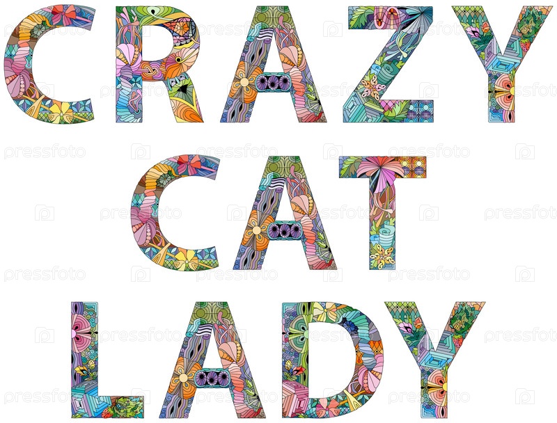 Ручной рисунок иллюстрирующих слов CRAZY CAT LADY для футболок и других украшений