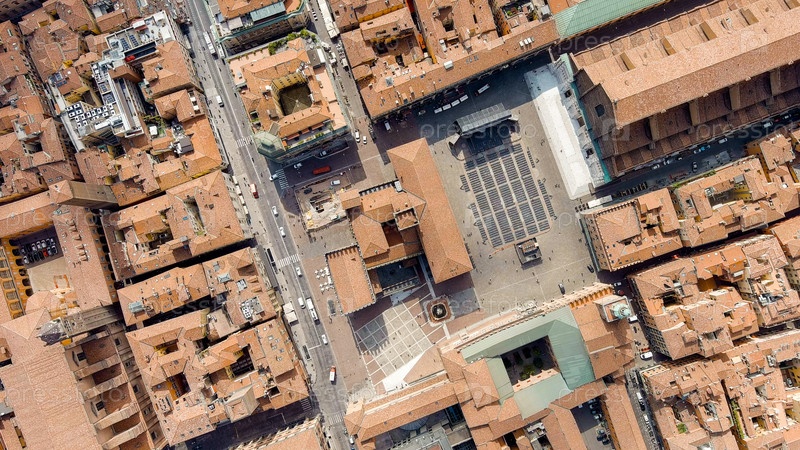 Болонья, Италия.Старый город.Базилика Сан-Петронио, Пьяцца Мажоре.Панорамный вид на город.Летом, Aerial View