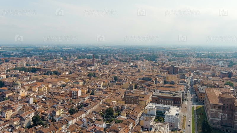 Пиаценца, Италия. собор Пьяченцы. епископский дворец. исторический центр города. летний день, взгляд с воздуха