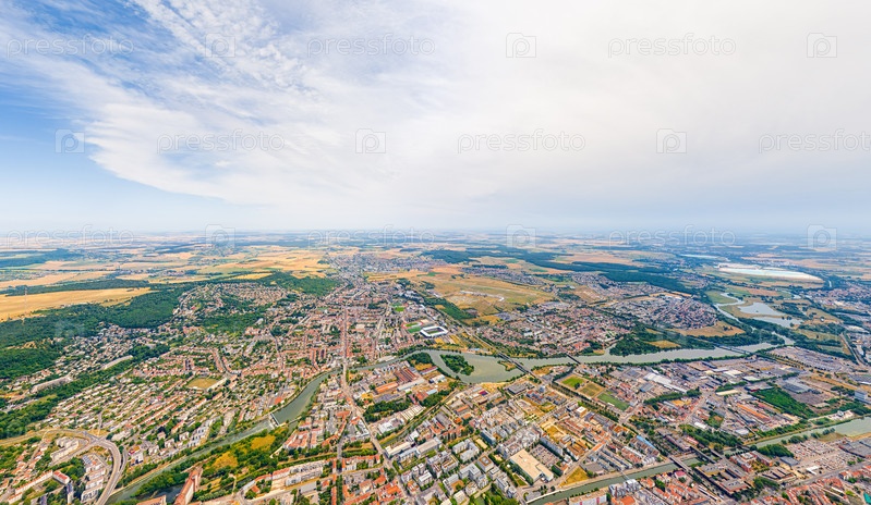 Нанси, Франция.Панорама города в летний день.Солнечная погода с облаками.Вид из воздуха