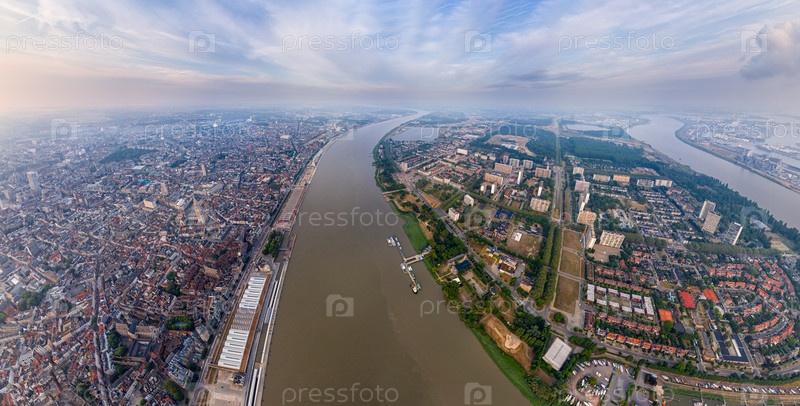 Антверпен, Бельгия.Панорама города.Летнее утро.Вид с воздуха