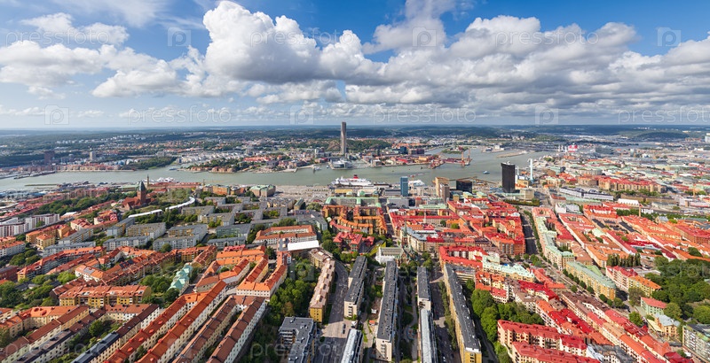 Гетеборг, Швеция Панорама города летом в пасмурную погоду