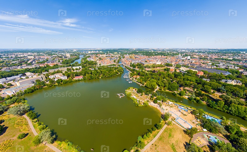 Мец, Франция.Панорама города в летний день.Солнечная погода.Вид с воздуха