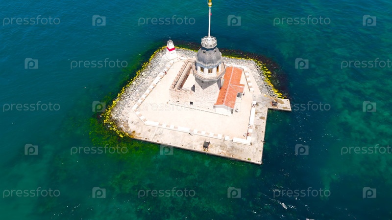 Башня Девы Kiz Kulesi изолирована на небольшом скалистом острове в Босфорском проливе