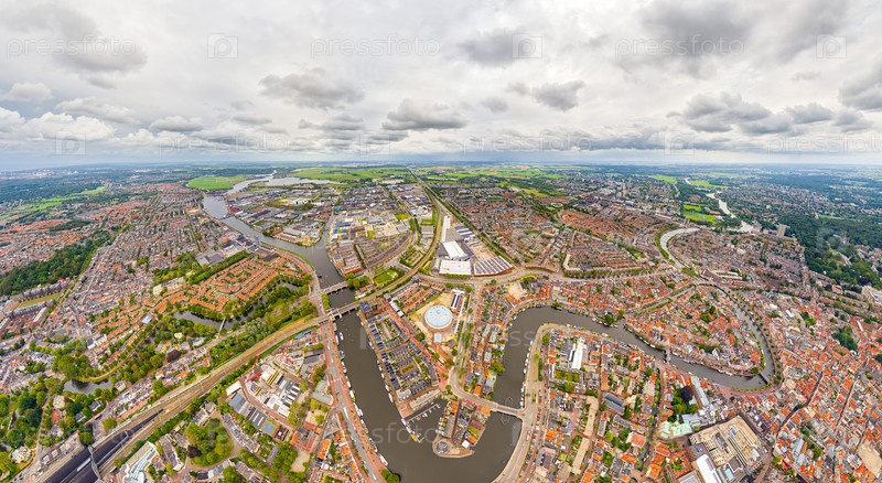 Гаарлем, Нидерланды Панорама города летом в пасмурную погоду