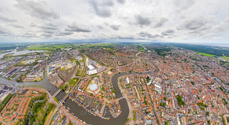 Гаарлем, Нидерланды Панорама города летом в пасмурную погоду