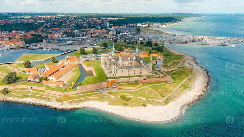 Хельсинки, Дания Замок 16-го века с банкетным залом и королевскими палатами Прототип замка Элсинор в пьесе "Гамлет", вид из воздуха
