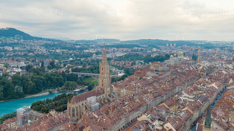 Берн, Швейцария.Бернский собор.Панорама города с видом на исторический центр.Летнее утро, Aerial View