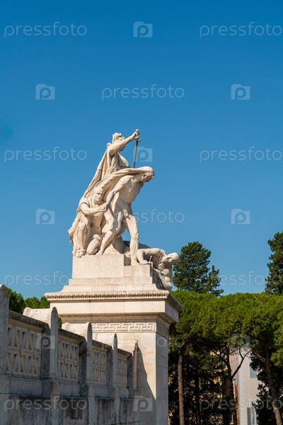 Рим, Италия. скульптурные группы "Ценности итальянцев" - Diritto. Vittoriano - памятник в честь первого короля объединённой Италии Виктора Эммануила II