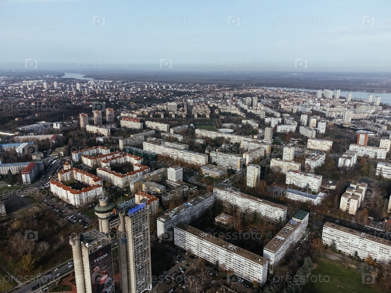 Вид на площадь башни Genex, район Нового Белграда, Сербия
