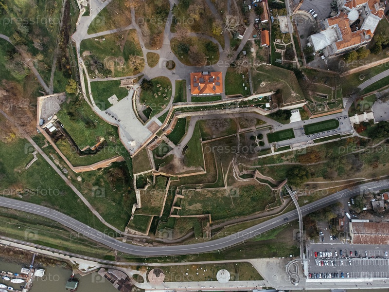 Вид с высоты крепости Калемегдан в Белграде.Летняя фотография из беспилотника.Сербия
