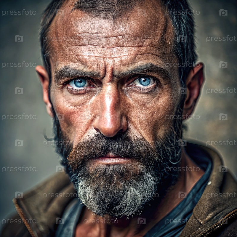 Близкий портрет сильного греческого мужчины с бородой и голубыми глазами