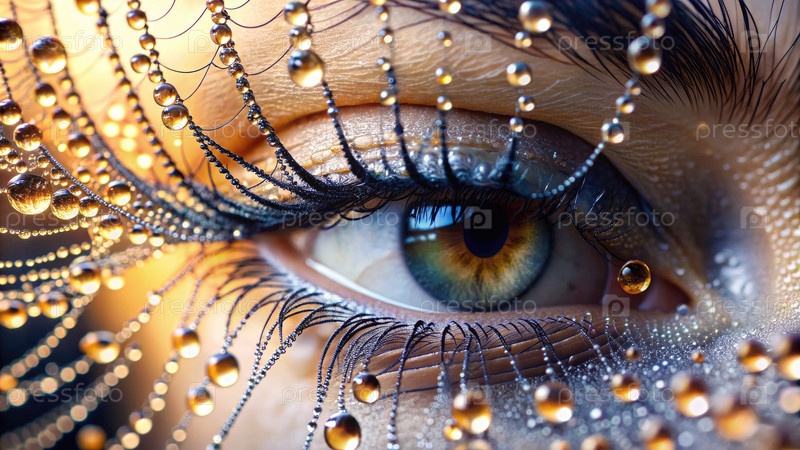 Близкий взгляд на женское око, украшенное капельками воды