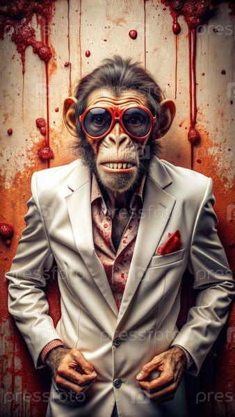 Обезьяна в костюме и солнцезащитных очках.Генеративный ИИ