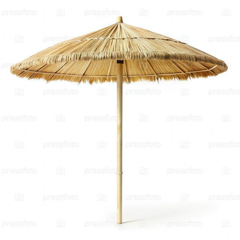 Изолированный зонтик соломенного пляжа для защиты от солнца летом. генеративная ИИ